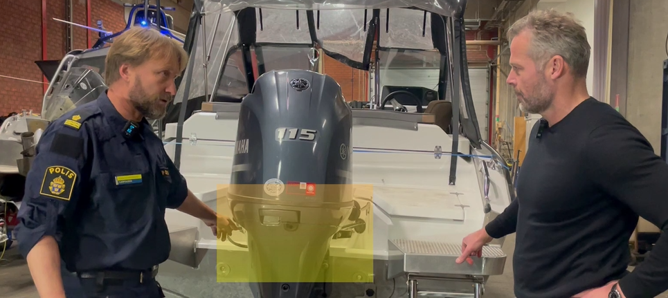 På bilden nedan visar poliserna Rino och Tommy vart du hittar skrovnumret.