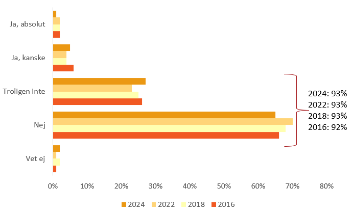 Diagrammet visar svaret på frågan: Känner du något som har begått försäkringsbedrägeri?