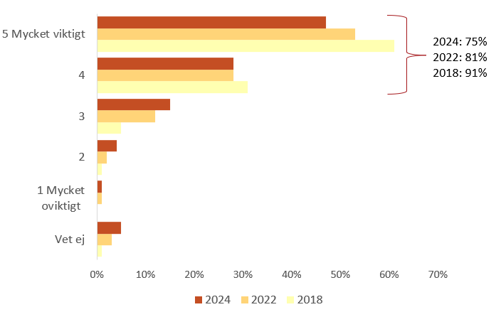 Diagrammet visar svaret på frågan: Hur viktigt eller oviktigt anser du att det är att försäkringsbolagen jobbar med utredningar för att upptäcka och förhindra försäkringsbedrägerier?